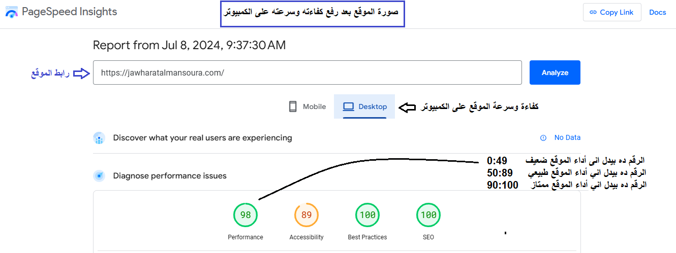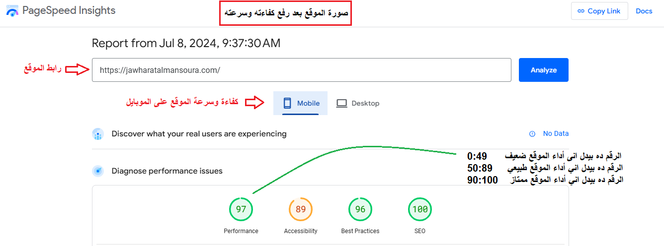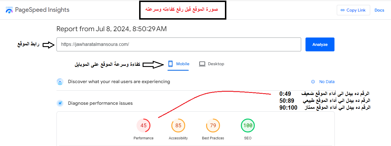 يمكننى رفع كفاءة وتحسين سرعة الموقع الإلكتروني لك على الموبايل والكمبيوتر